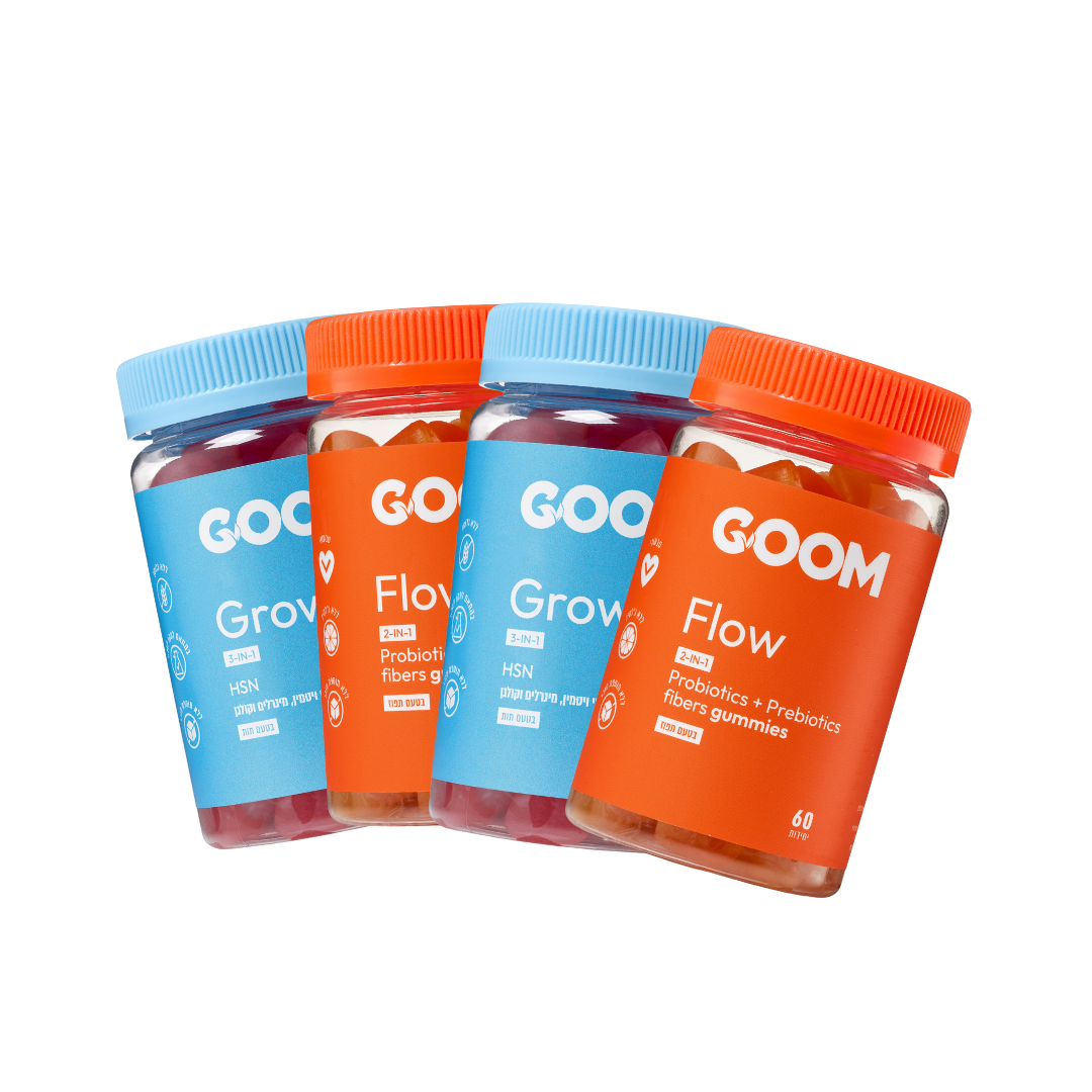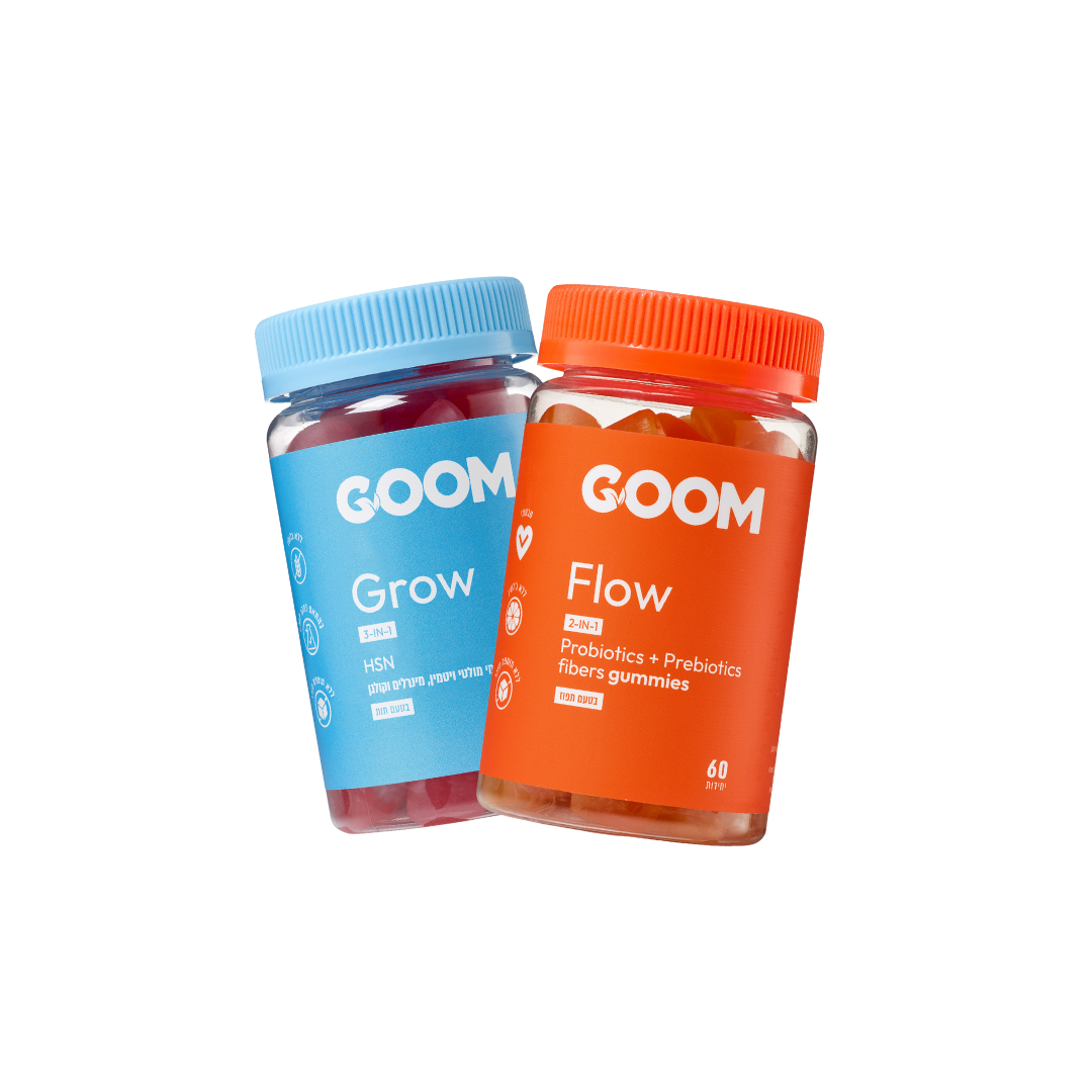 פורמולת Flow - יש לקחת 2 טבליות גומי ביום פורמולת GROW - יש לקחת 2 טבליות גומי ביום